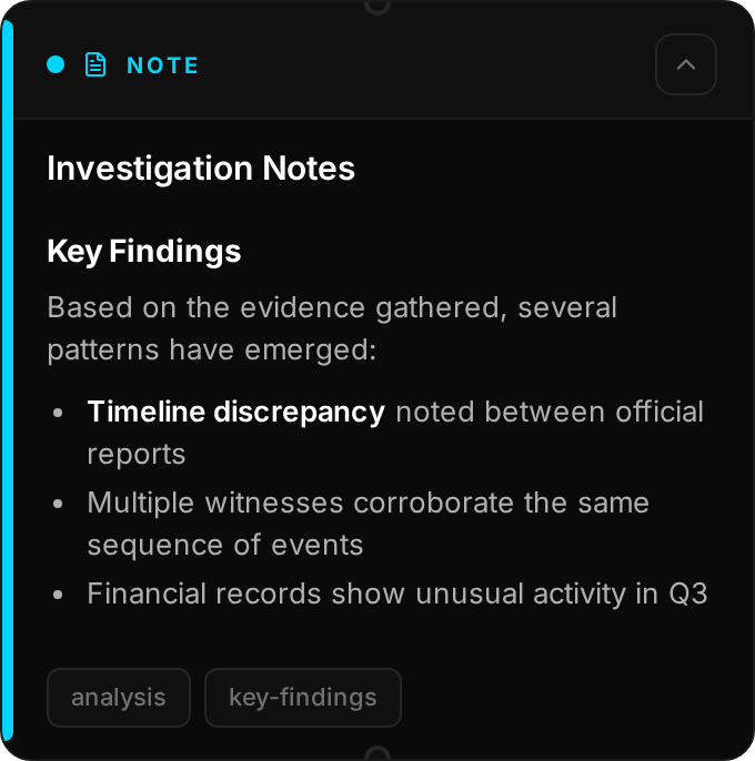 Use For: Quick notes, analysis, observations, meeting notes, research summaries